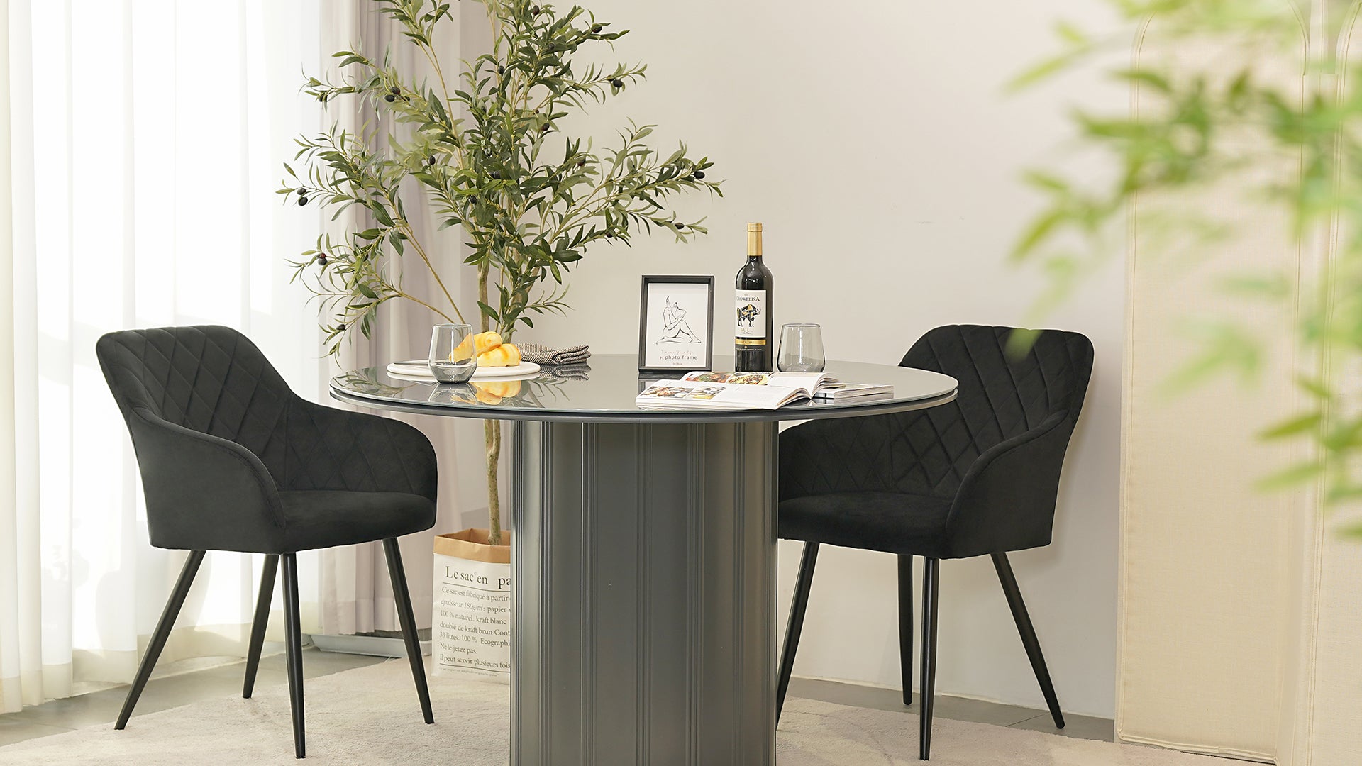 “Patas de metal negro, elegantes y duraderas. Además, la silla es fácil de montar y las almohadillas antideslizantes ajustables en los pies protegen el suelo de la abrasión.”
