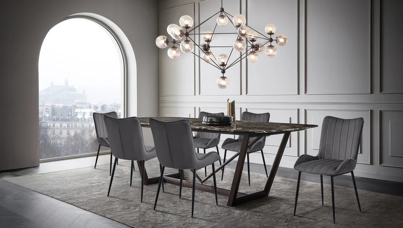 Utilizando material de veludo, a cadeira de jantar é macia, confortável e luxuosa, dando à sua área de jantar um aspeto de alta qualidade.