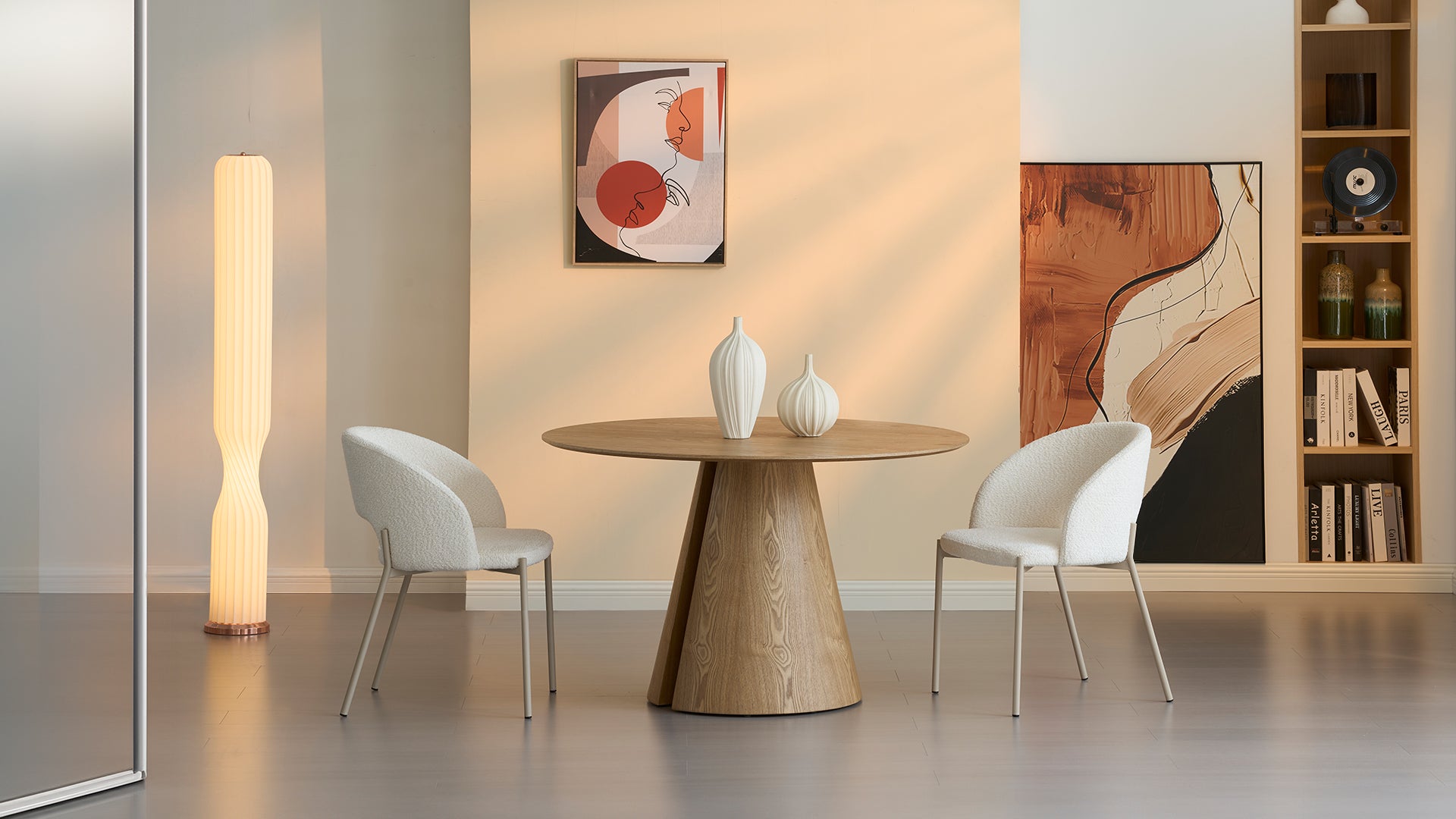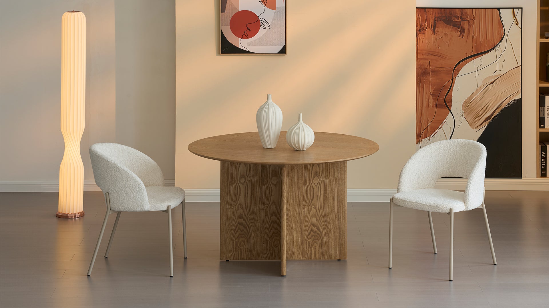 Deixe-se envolver pelo convidativo revestimento em bouclé da cadeira de jantar Esme, onde curvas suaves o aconchegam desde o café da manhã até às conversas noturnas. O tecido bouclé em tom creme chocolate não é apenas incrivelmente macio, mas também está na moda, acrescentando textura e personalidade instantâneas a qualquer divisão.
