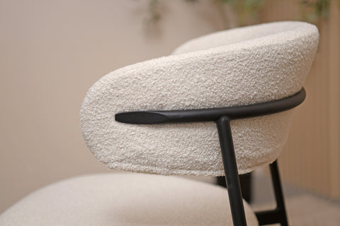 - 【Tecido Boucle】As cadeiras são confeccionadas em tecido boucle, o que dá uma sensação de calor e tranquilidade e torna o tecido durável e resistente ao desgaste. Esse recurso garante que as cadeiras sejam confortáveis e fáceis de usar, ao mesmo tempo que são duráveis.
