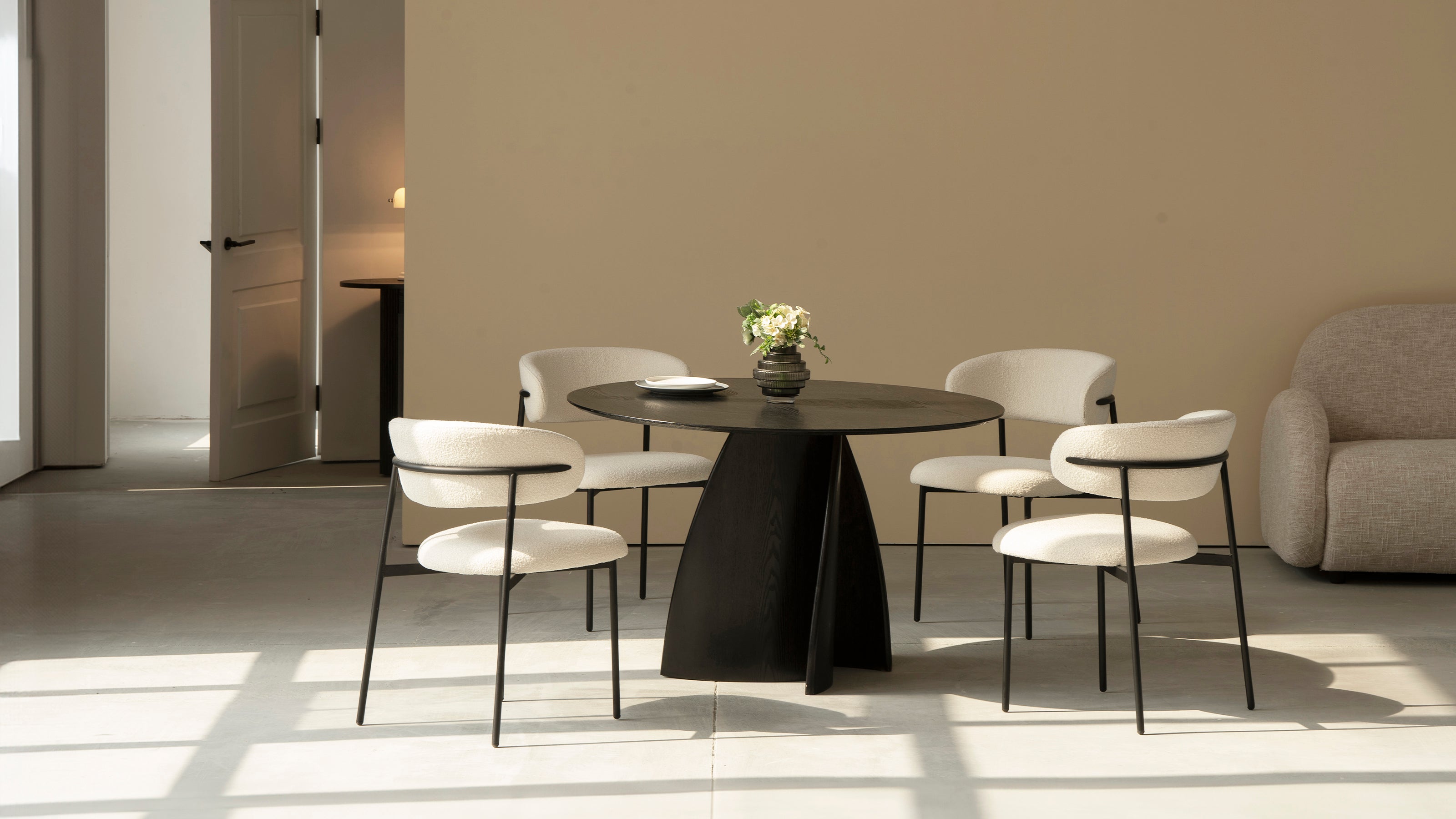 A mesa Gemma combina um design escultural com praticidade cotidiana, sendo a escolha perfeita para quem busca elegância sem compromissos.