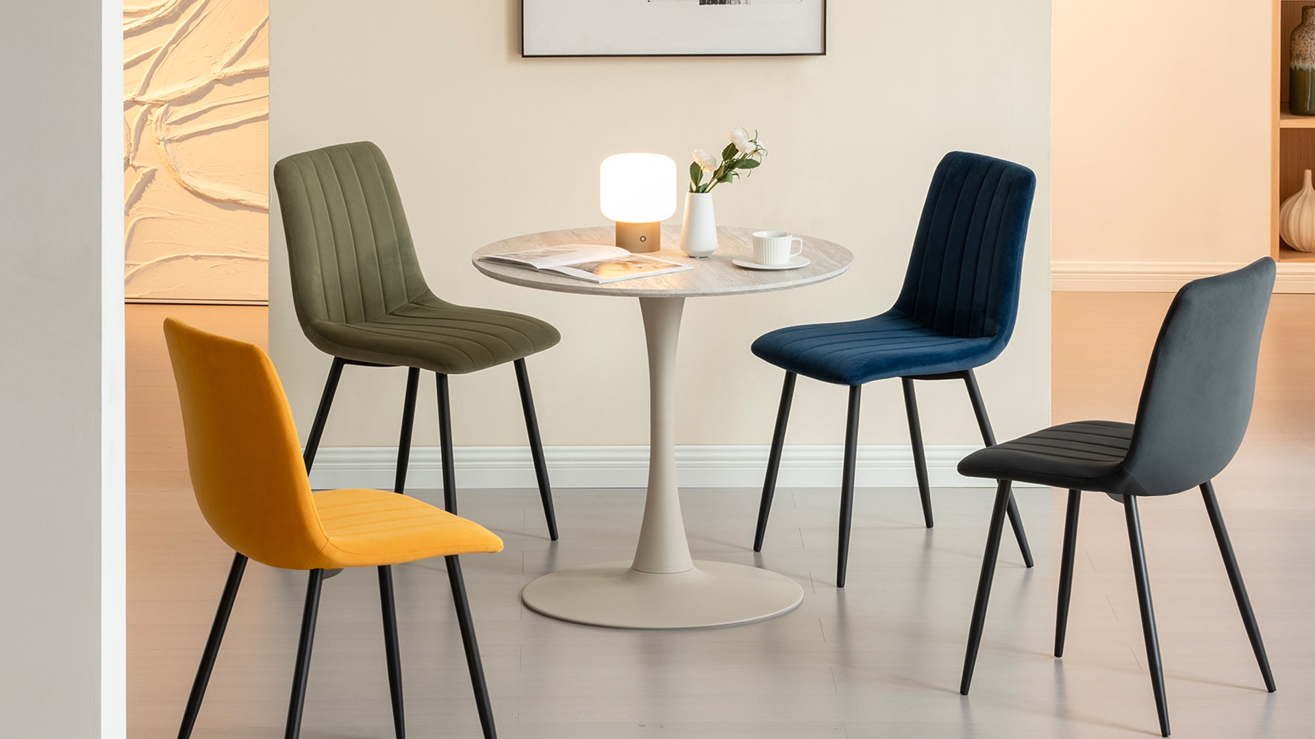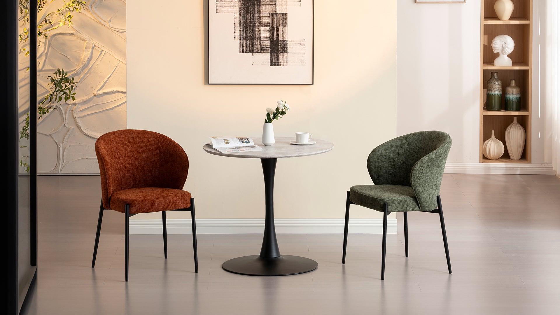 Imagine começar o seu dia com um café da manhã aconchegante a dois na Mesa Redonda Tiana da OFCASA. Com apenas 80 cm de diâmetro, é o lugar perfeito para moradores de apartamentos em Londres que desejam um cantinho estilo café chique sem sacrificar espaço. Seja para um brunch de fim de semana ou para trabalhar com um latte fumegante, sua superfície lisa com efeito travertino é tão sofisticada quanto parece.